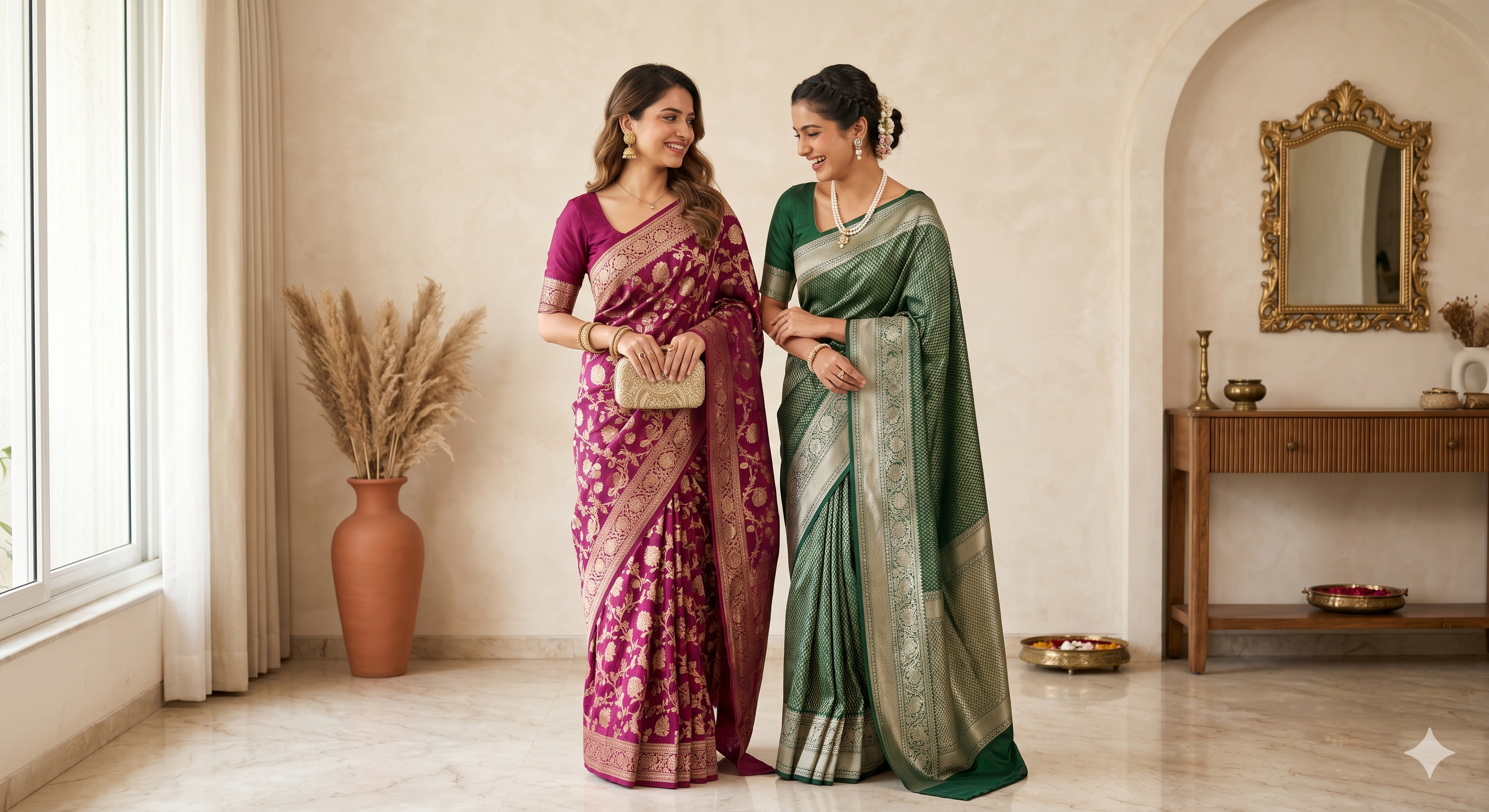 Our J-Card sarees are thoughtfully designed to bring together rich artistry, premium fabrics, and refined textures. Each drape balances tradition with modern grace—offering effortless elegance, lasting comfort, and a style that feels uniquely yours.